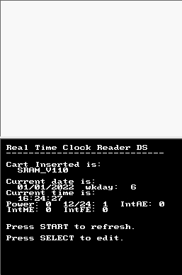 RTCRead本质是一个读取卡带RCT时间并可以对其进行修改的软件(注意:它不会对卡带存档进行任何修改)。它在GBA和DS上分别有对应的软件,均需要烧录卡才能进行使用。